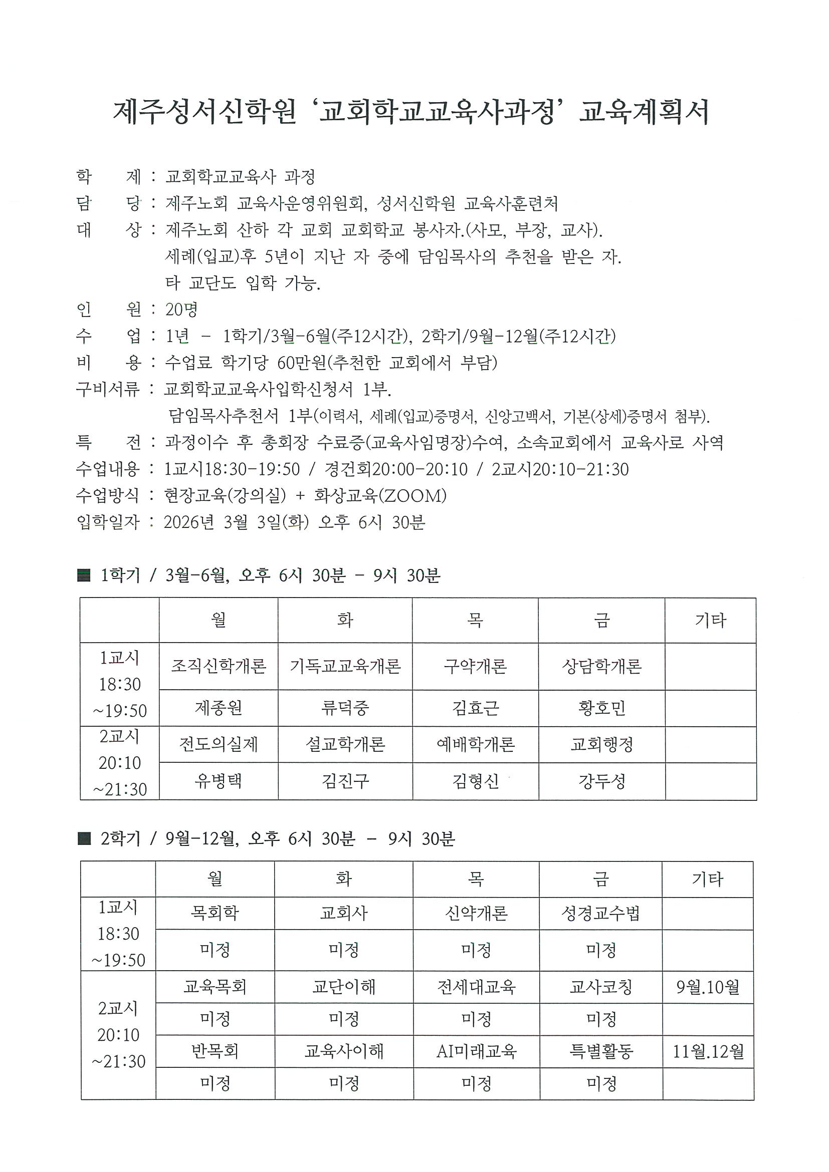2026학년도 제주성서신학원 신입생 모집